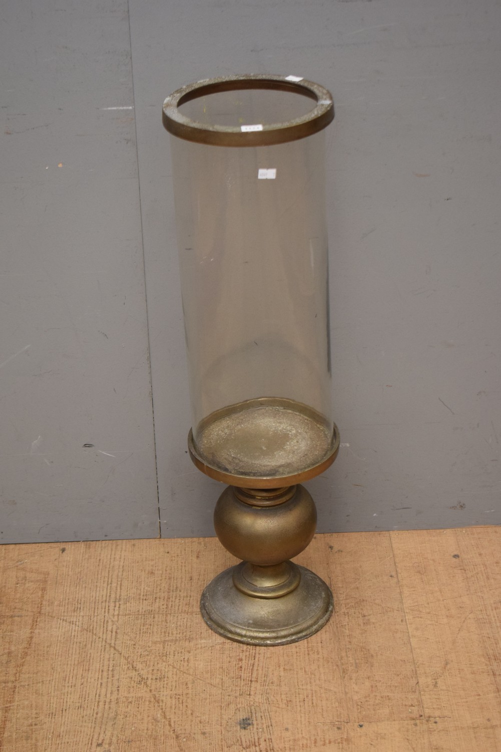 A CAST ALLOY AND GLASS DISPLAY VASE (81 CM H)