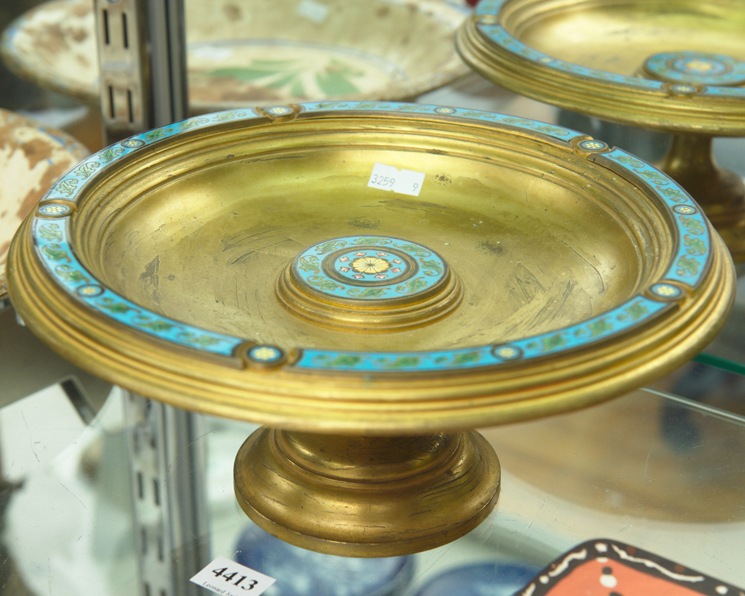 A FRENCH ENAMEL ON BRASS COMPORT