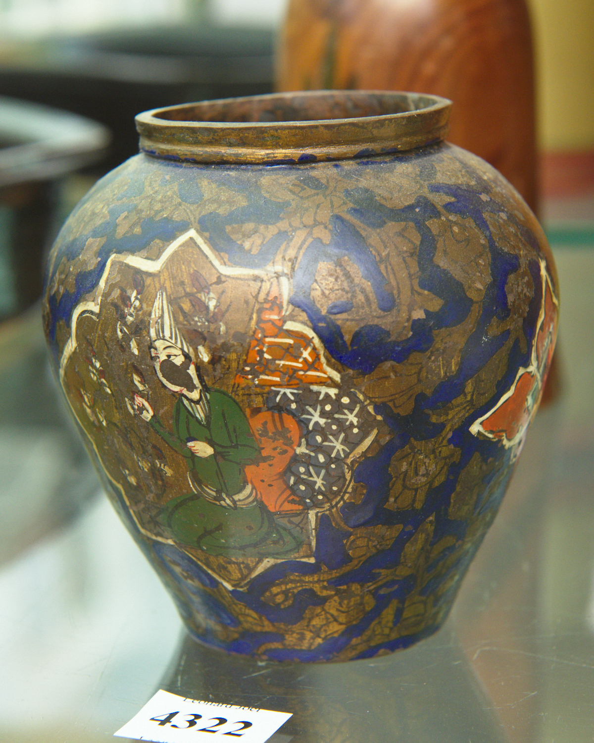 AN ANTIQUE PERSIAN ENAMEL VASE