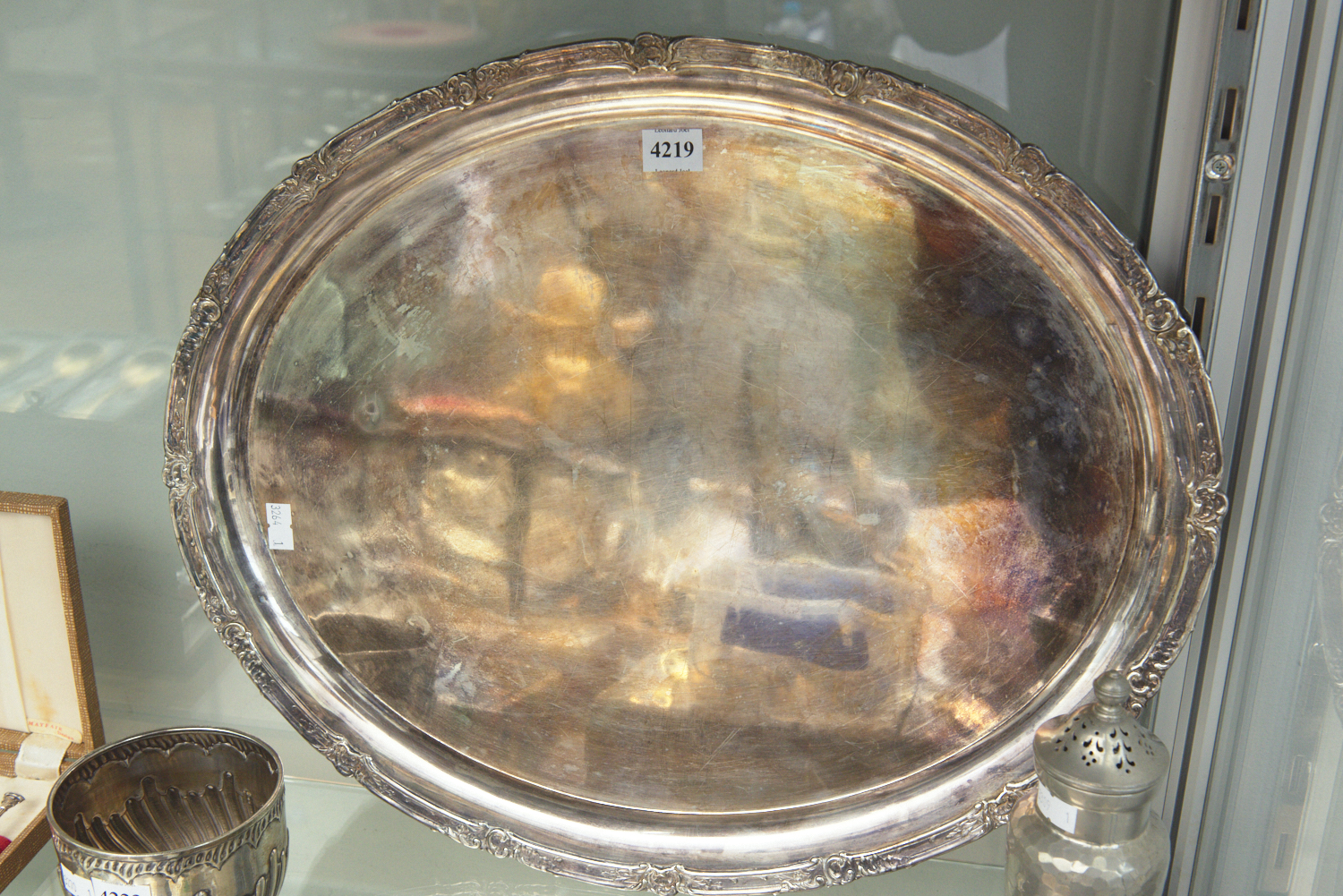 AN 800 SILVER TRAY, APPROXIMATELY 1104 GMS TOTAL SILVER WEIGHT 45 CM WIDE