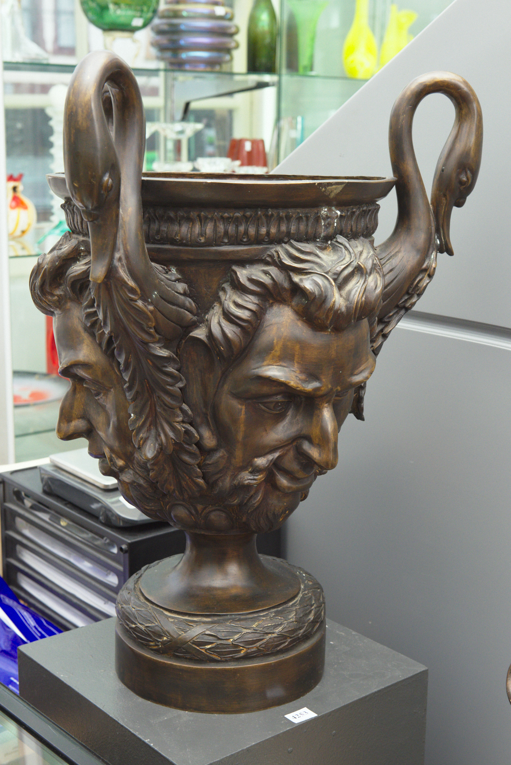 A LARGE CLASSICAL STYLE BRONZE URN, 58 CM HIGH