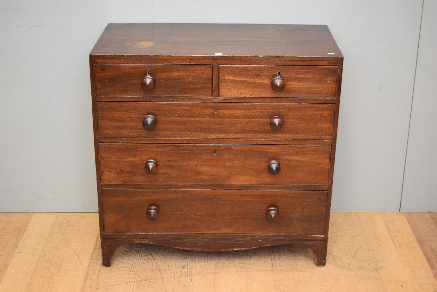 AN ANTIQUE FIVE DRAWER CHEST (A/F) (90H X 90W X 48D CM)