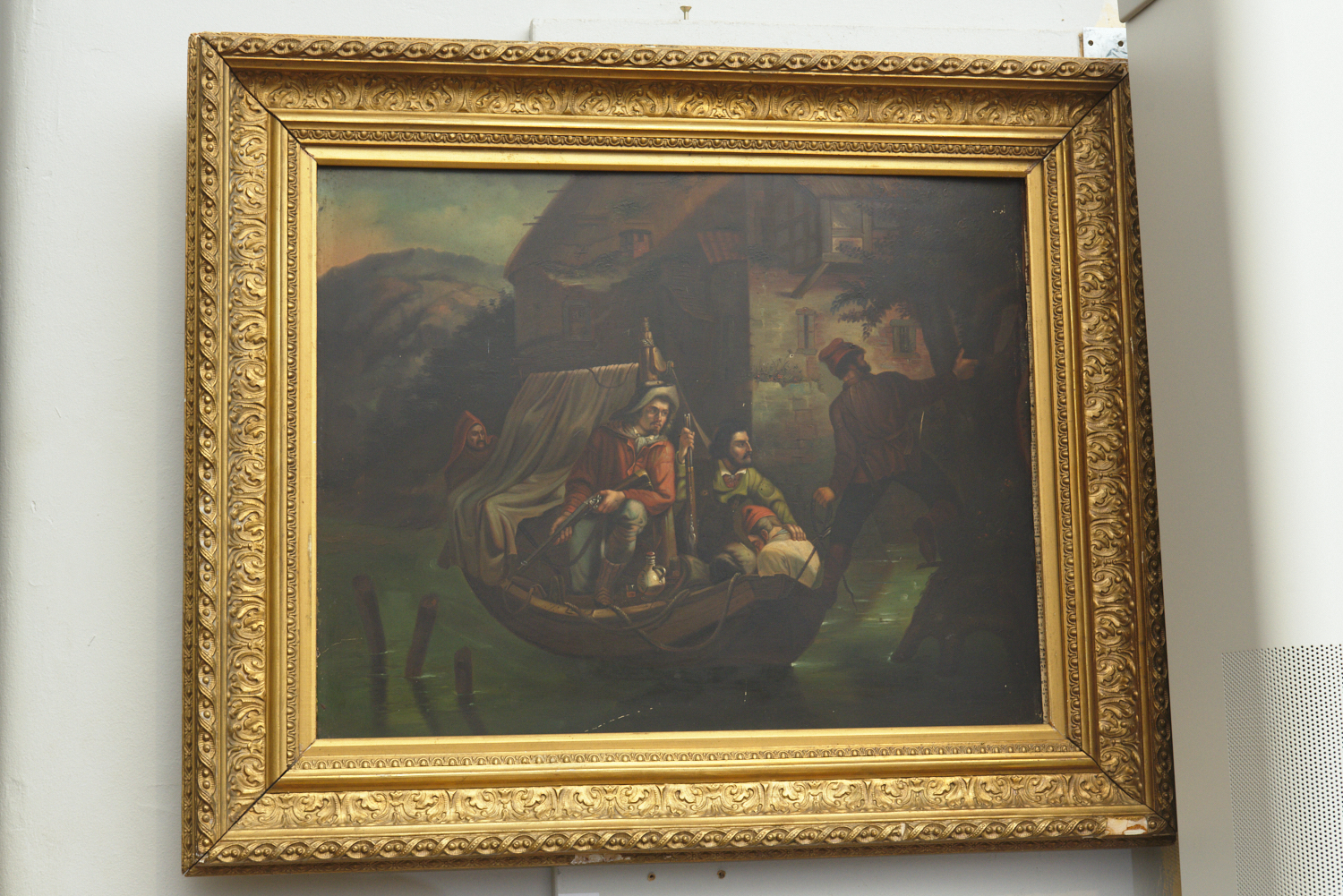 AN 18TH CENTURY DUTCH OIL ON TIN, NIGHT RAIDERS IN GILT FRAME