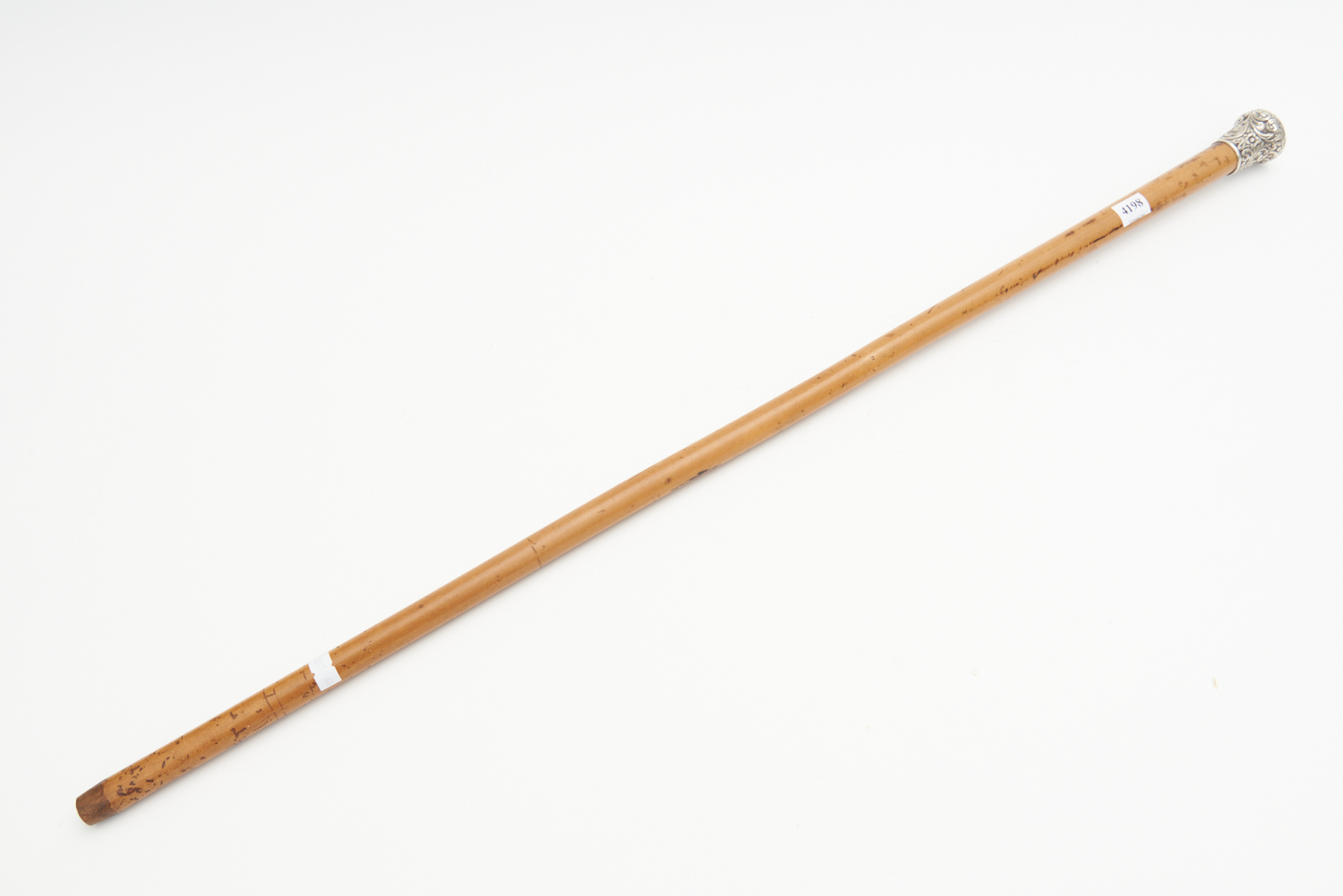 A STERLING SILVER FLORAL DETAILED MALACCA CANE WALKING STICK L.88CM, LEONARD JOEL DELIVERY SIZE: SMALL