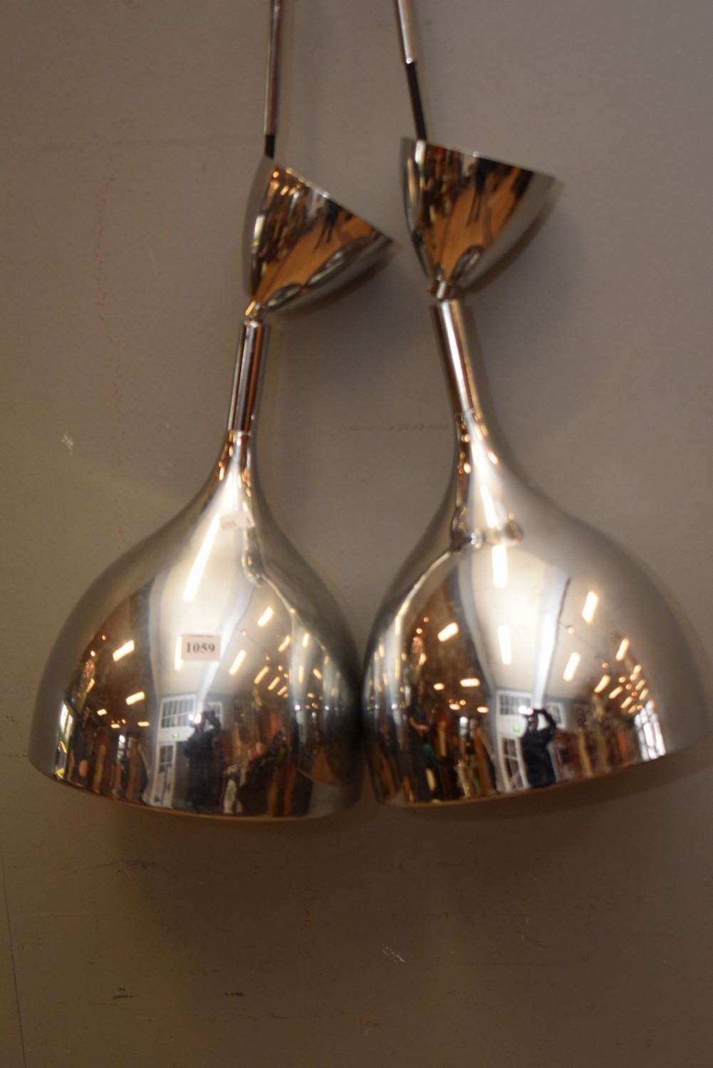 A SET OF TWO VINTAGE MODERNIST CHROME CEILING LIGHTS (40 CM H)