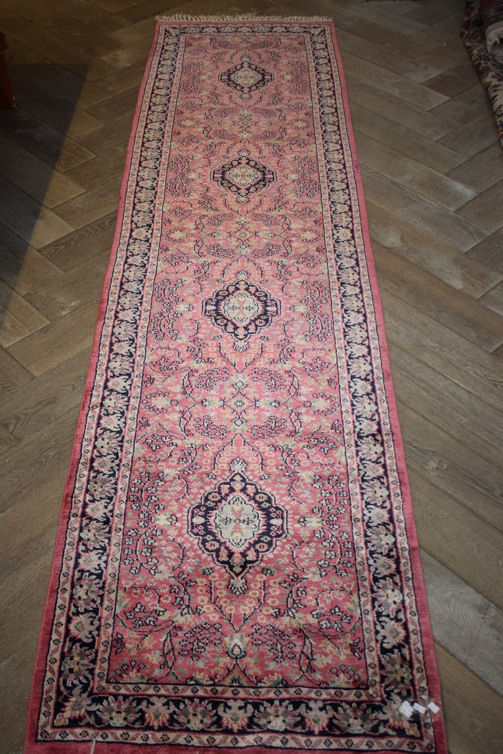 A KASHAN SILK ON COTTON RUNNER IN PINK TONES (A/F) (310 X 78 CM)