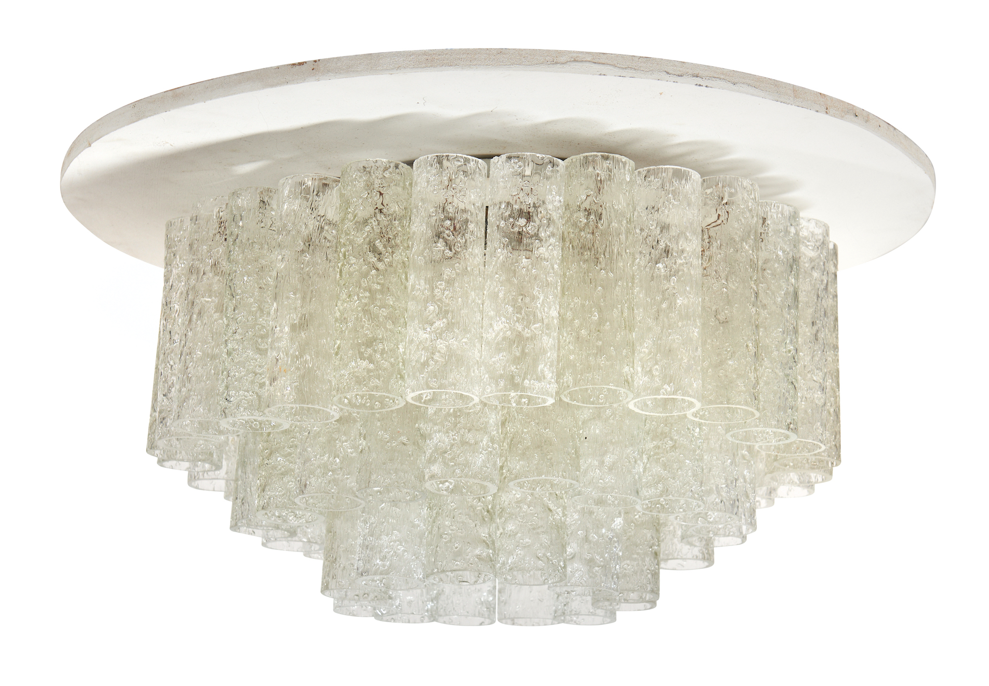 This chandelier has all of its pieces in tact, there are no cracks to the glass. A bespoke circular wooden plate has been made to connect the chandelier too. It can easily be removed.