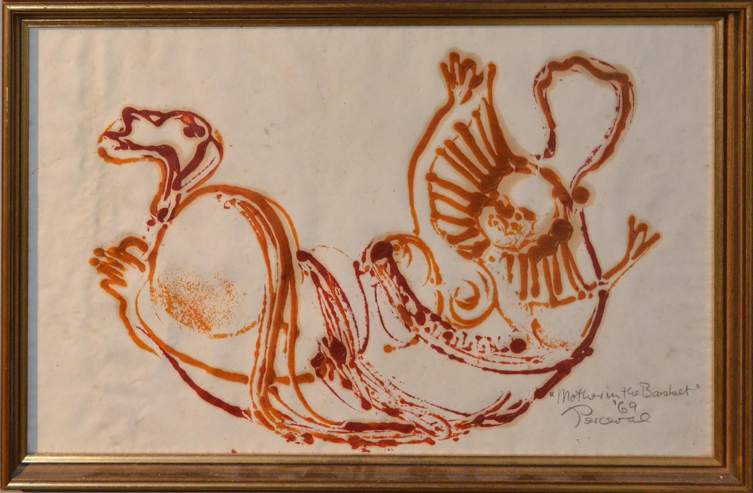 JOHN PERCEVAL, MOTHER IN THE BASKET 1969, INK ON PAPER, 42 X 66.5CM, , CONDITION: DISCOLOURATION, OIL VISIBLE