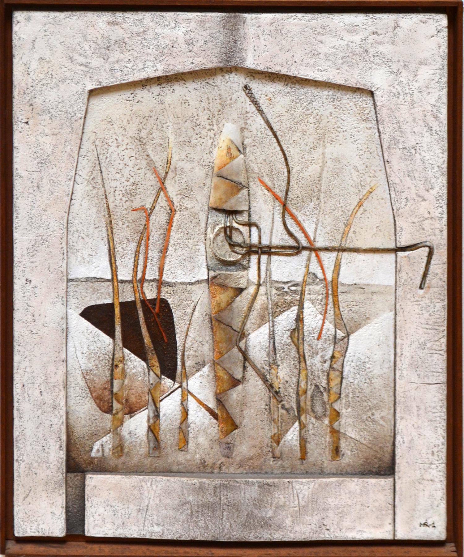 IGNACIO JOSE MARMOL (1934-1994), PRAESINS RITUS 1980, ENAMEL, OIL AND COLLAGE ON BOARD, 61 X 52CM, FRAME SIZE: 65 X 56CM, CONDITION: VERY GOOD