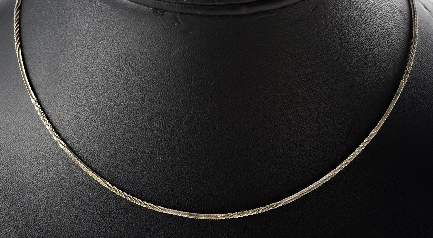 AN ITALIAN FANCY LINK CHAIN IN 18CT WHITE GOLD, TOTAL LENGTH 400M, 2.8GMS