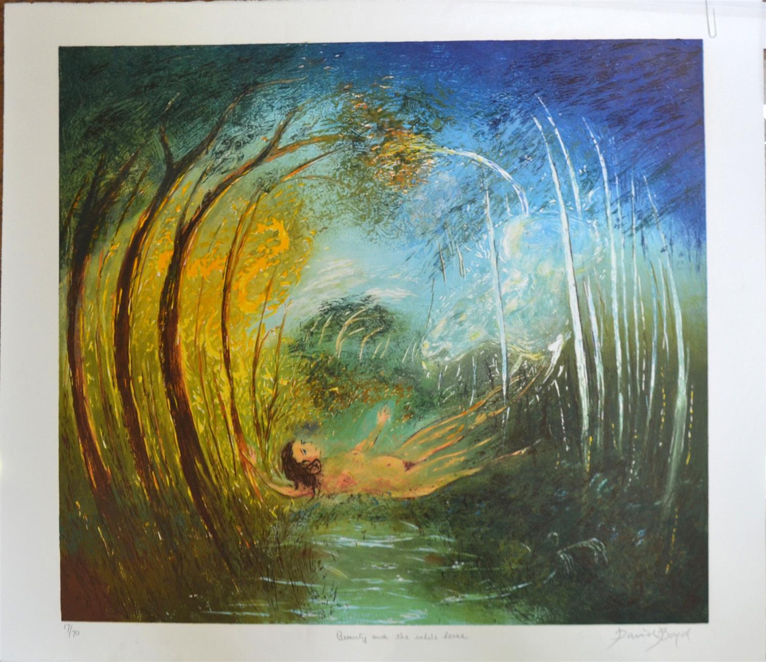 DAVID BOYD, BEAUTY AND THE WHITE HORSE, COLLAGRAPH 17/70, 67 X 77CM, UNFRAMED, CONDITION: VERY GOOD
