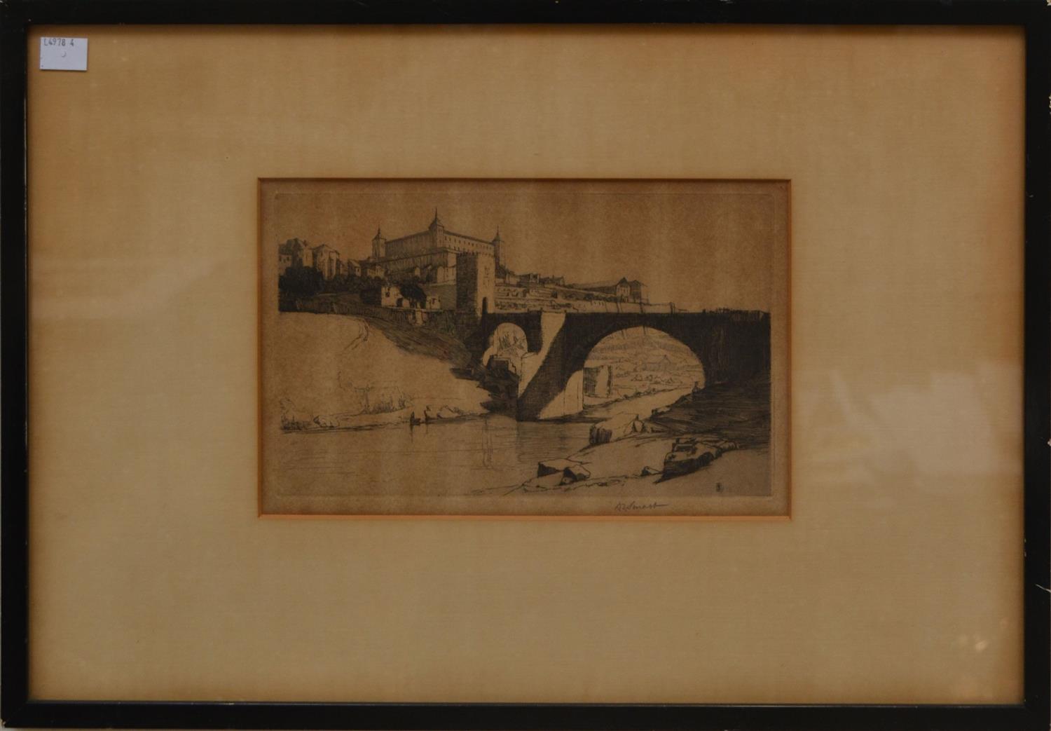 ARTIST UNKNOWN, EUROPEAN SCENE, ETCHING, 14 X 24CM, FRAME: 36 X 52CM, SIGNIFICANT DISCOLOURATION AND FOXING, LEONARD JOEL DELIVERY SIZE: SMALL