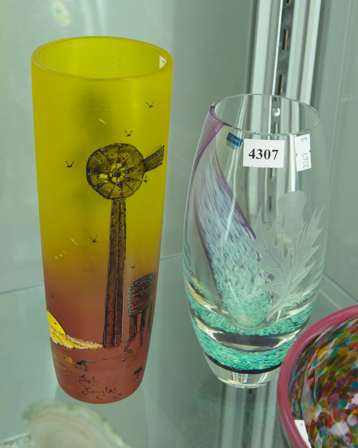 TWO GLASS VASES, ONE CAITHNESS, THE OTHER WITH AN AUSTRALIAN SCENE