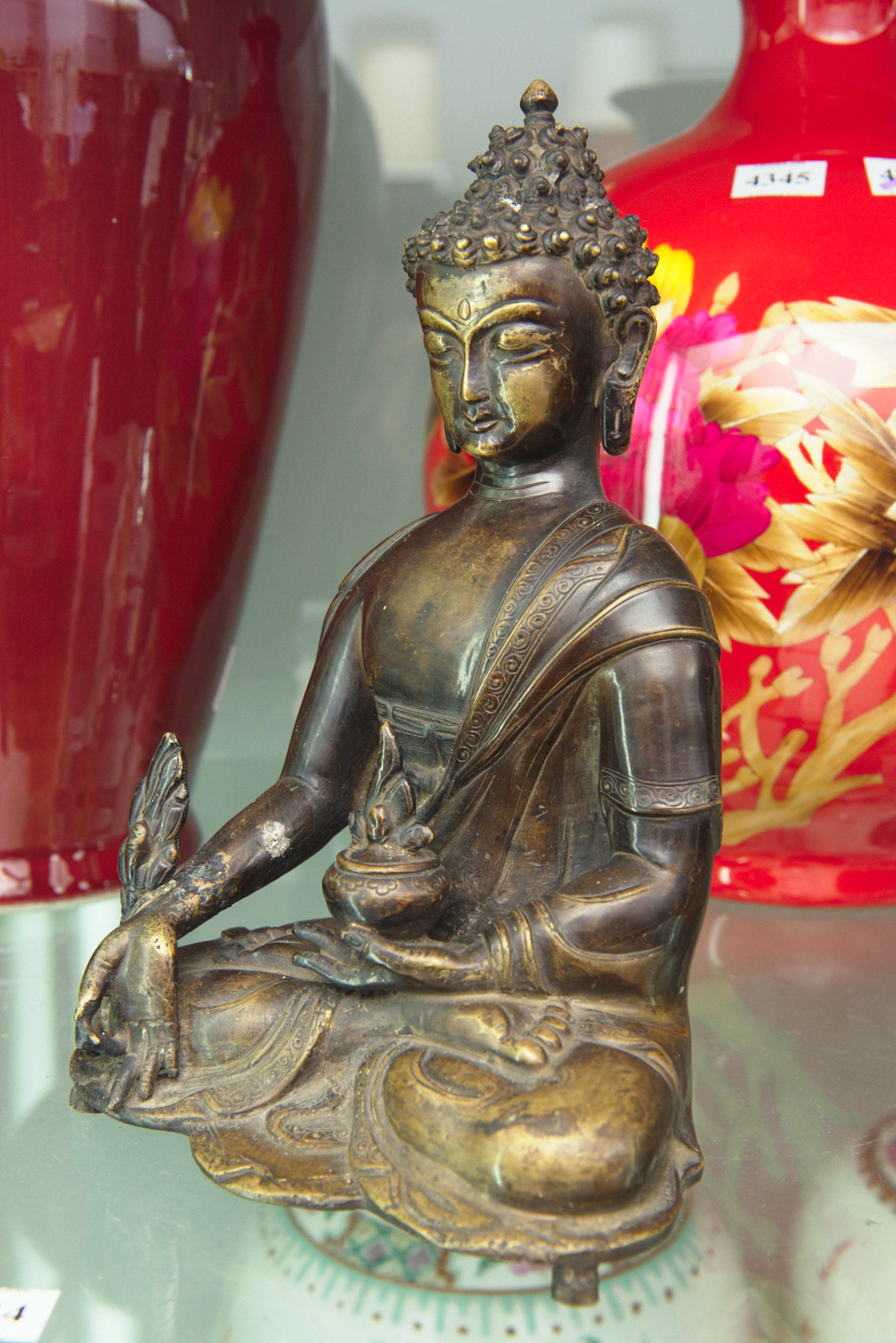 A BRONZE BUDDHA, 23.5 CM HIGH