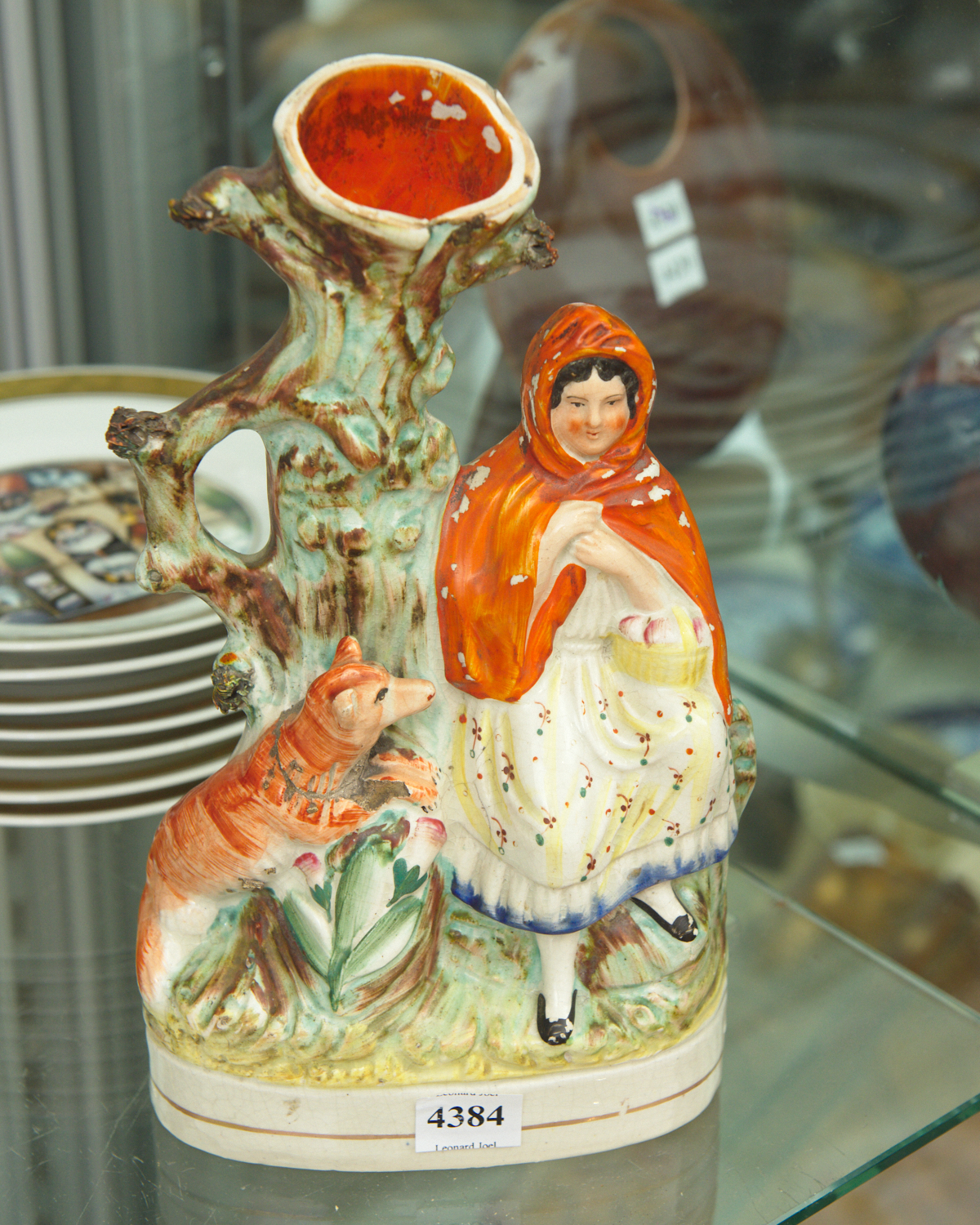 A STAFFORDSHIRE RED RIDING HOOD SPILL VASE (A/F)