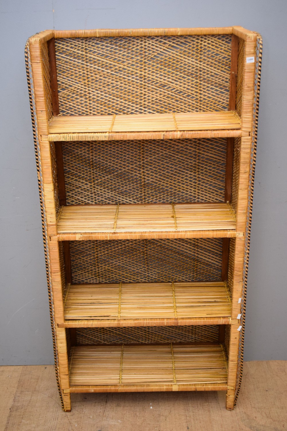 A WICKER FOUR TIER BOOKSHELF (153H X 77W X 33D CM)