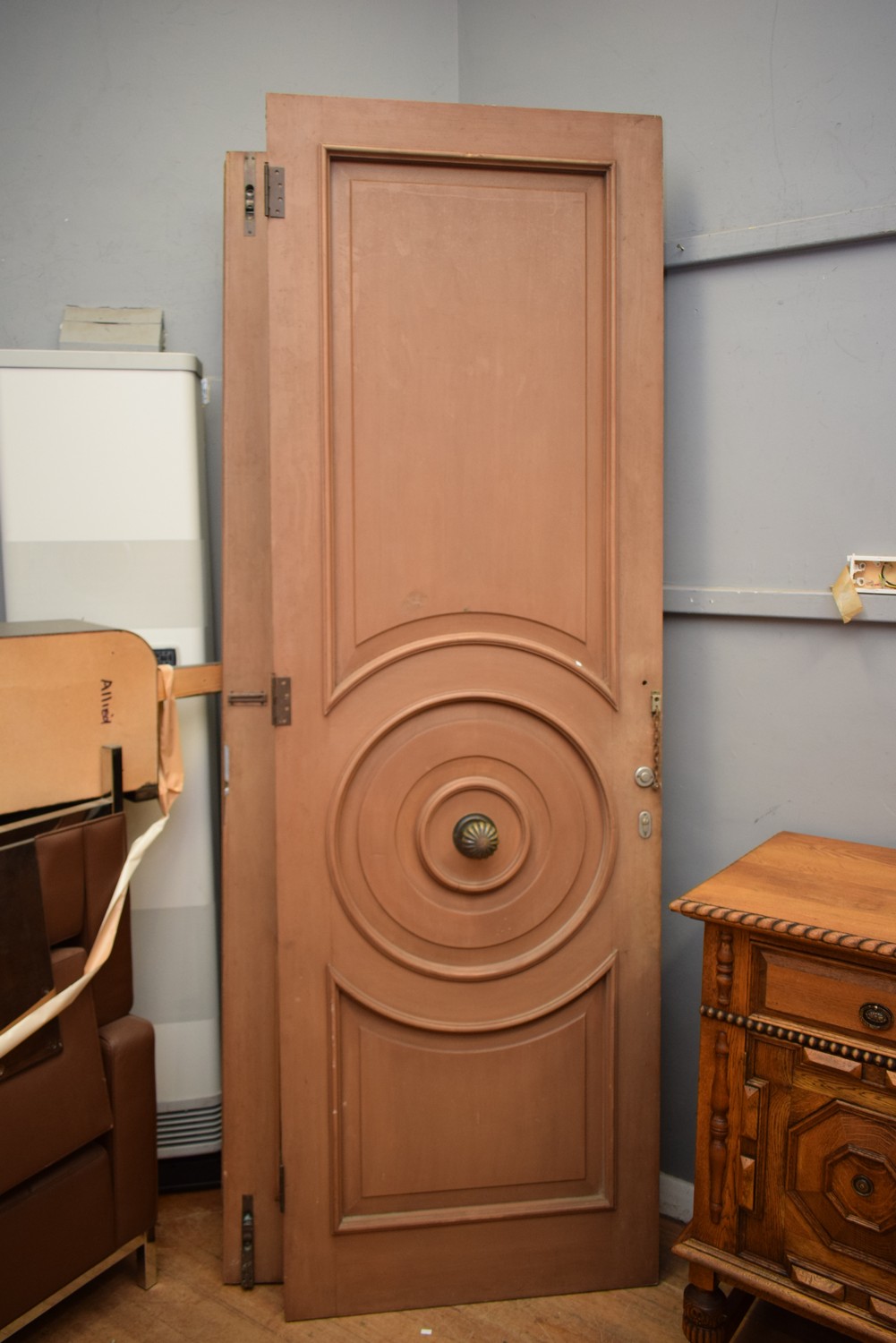 A PAIR OF SUBSTANTIAL DOORS WITH BRASS HANDLES (266H X 86W CM) (PLEASE NOTE THIS HEAVY ITEM MUST BE REMOVED BY CLIENTS OR CARRIERS AT THE CUSTOMERS EXPENSE. LEONARD JOEL STAFF CANNOT ASSIST CARRYING THIS ITEM)