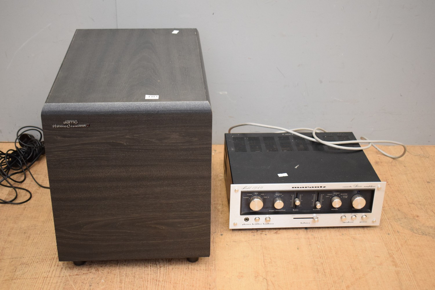A 'MARANTZ' AMP AND SUB AND 'JAMO' SUBWOOFER (A/F, UNTESTED) (SUB 38H X 49W X 32D CM)