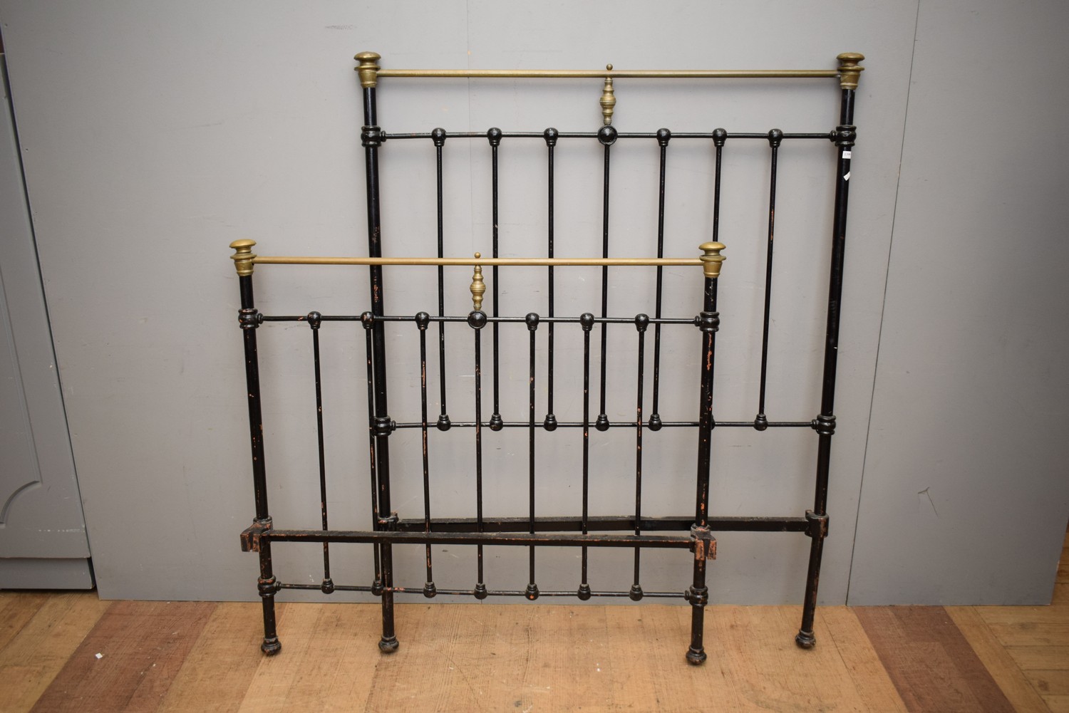A CAST IRON AND BRASS BEDHEAD AND END (NO RAILS) (A/F) (BEDHEAD 160H X 124W CM)