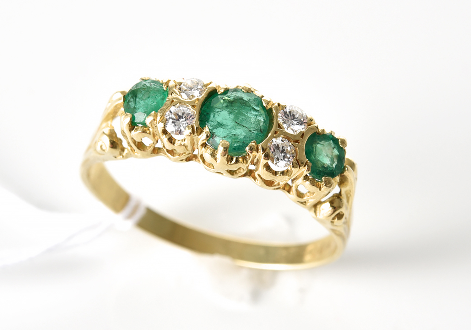 AN EMERALD AND DIAMOND NECKLACE - The riviere style necklace comprising graduating round brilliant cut diamonds totalling 5.60cts, s...