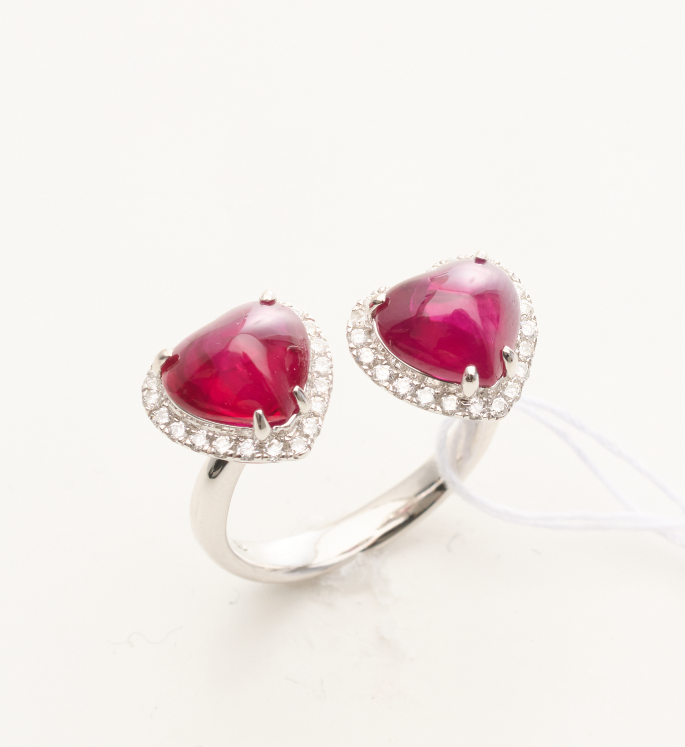 The ring presents in excellent, as new condition. The rubies are in excellent condition and secure in their settings. Diamonds are of a very good commercial quality. Gold surfaces show no evidence of wear.