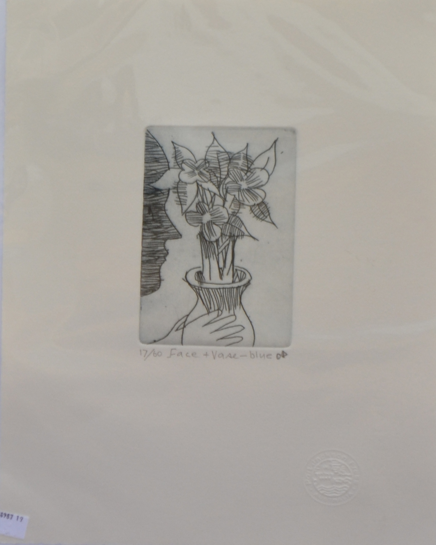 CHARLES BLACKMAN, FACE AND VASE - BLUE, ETCHING 17/60, 16 X 10CM, CONDITION: THIS WORK IS UNFRAMED BUT BACKED AND WRAPPED FOR PROTECTION, VERY GOOD, LEONARD JOEL DELIVERY SIZE: SMALL
