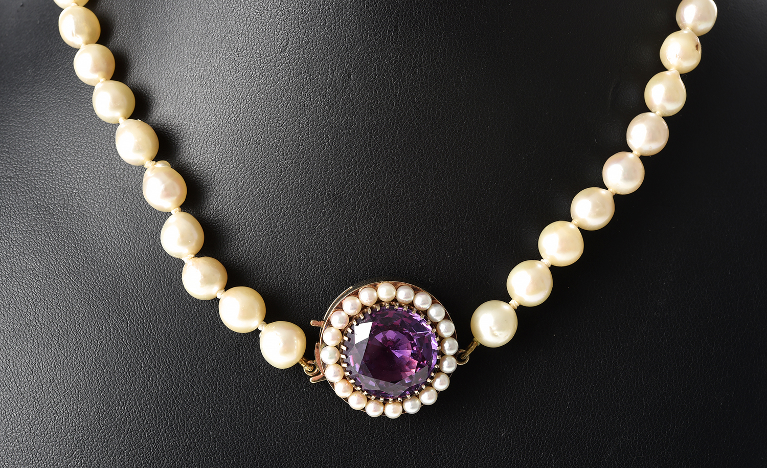 the synthetic alexandrite is round cut and measures approximately 15.30x16.07mm (cannot access the pavilion of the stone because of the clasp).