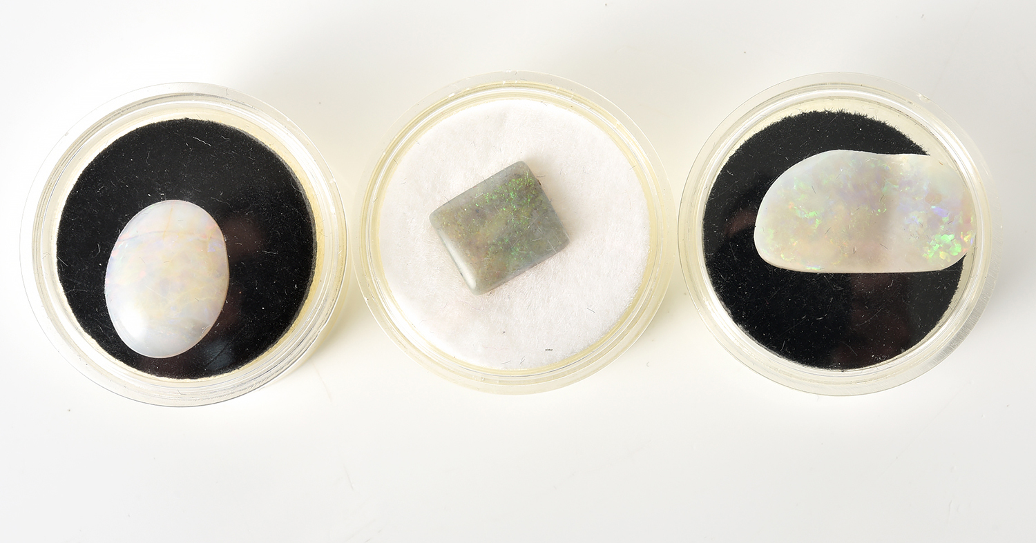 A COLLECTION OF THREE LOOSE OPALS IN VARYING CUTS
