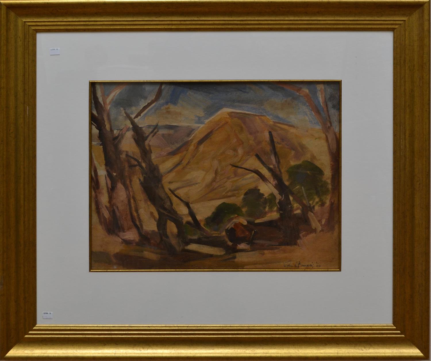 JOHN BORRACK, LANDSCAPE 1964, OIL ON BOARD, 47.5 X 60CM FRAME SIZE: 91 X 101CM CONDITION: SURFACE SCRATCHES AND SURFACE DIRT, FRAMED BEHIND GLASS, LEONARD JOEL DELIVERY SIZE: MEDIUM