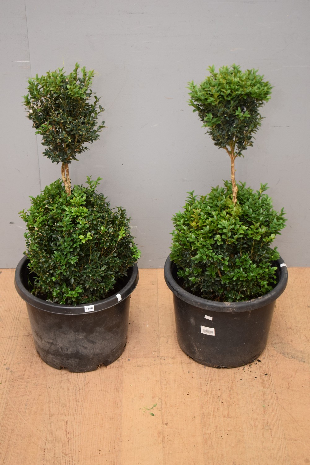 A PAIR OF DOUBLE SPHERE ENGLISH BOX TOPIARIES (LARGEST 87 CM H)