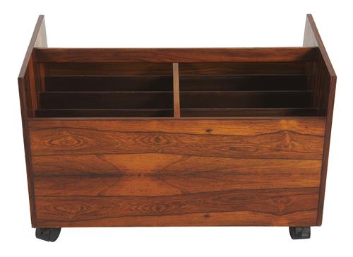 Rosewood with sectional holders, top handle with castors
