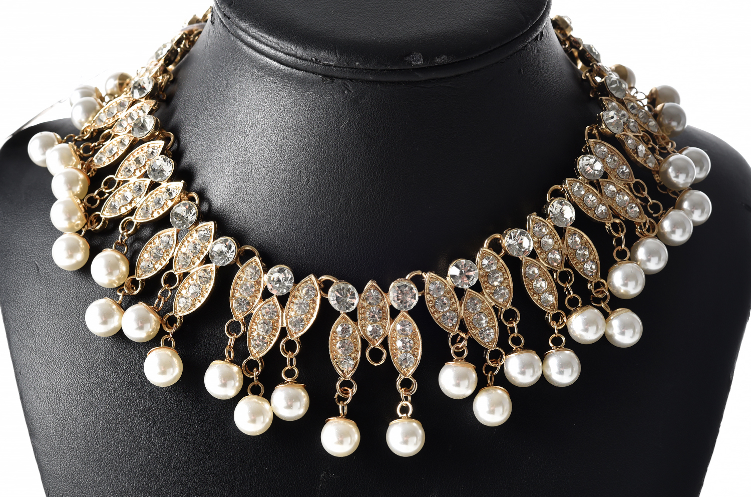 A GEM SET AND FAUX PEARL CHOKER STYLE NECKLACE IN GOLD TONED METAL, TO A LOBSTER CLASP, SIGNED OSCAR DE LA RENTA