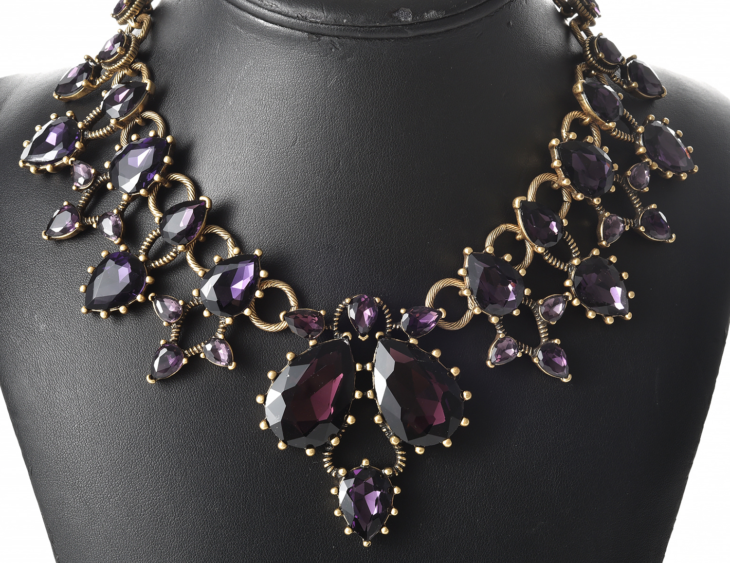 A PURPLE STONE SET DROP NECKLACE BY OSCAR DE LA RENTA, LENGTH ADJUSTABLE