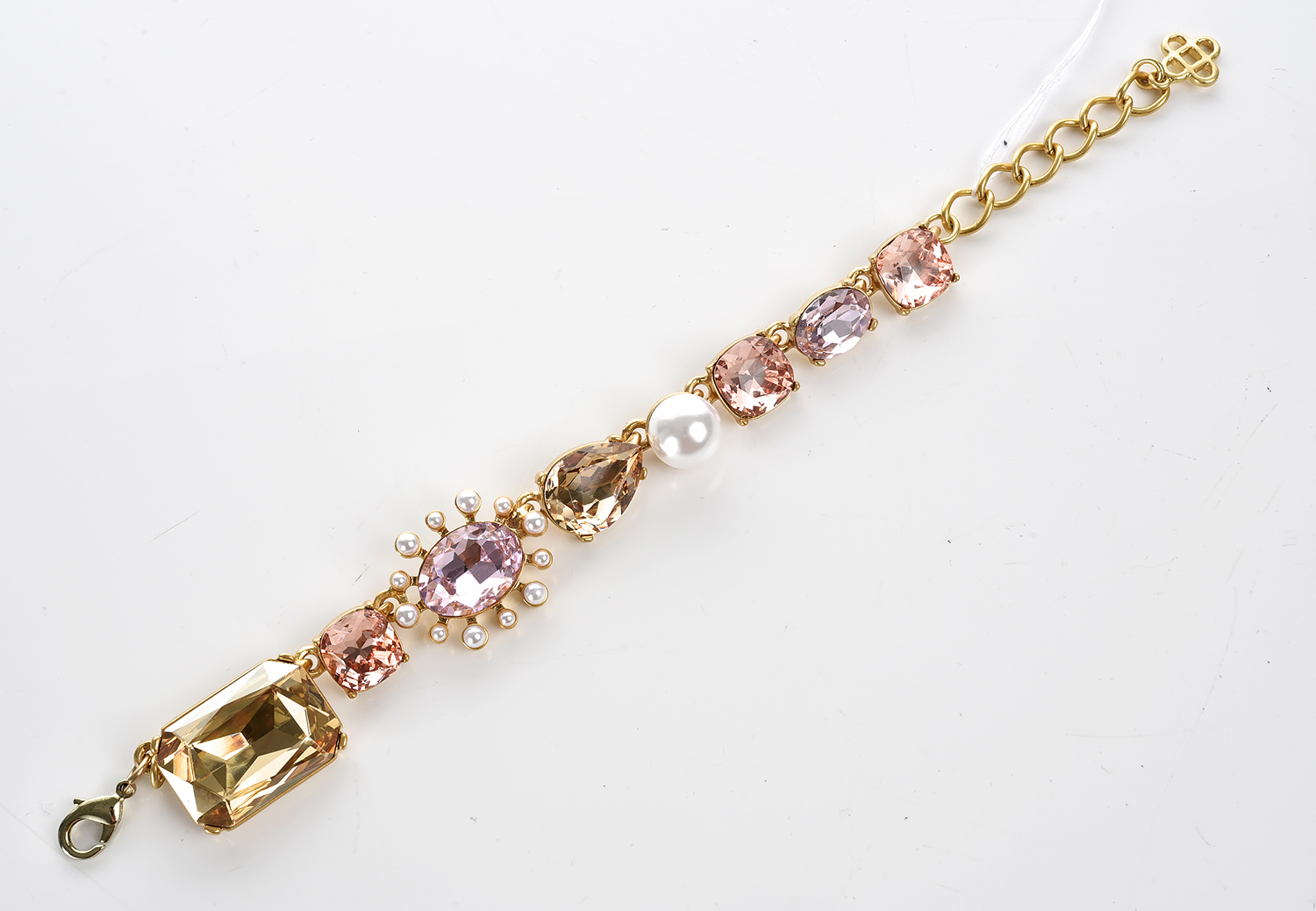 A PINK PASTE AND FAUX PEARL BRACELET BY OSCAR DE LA RENTA, ADJUSTABLE LENGTH