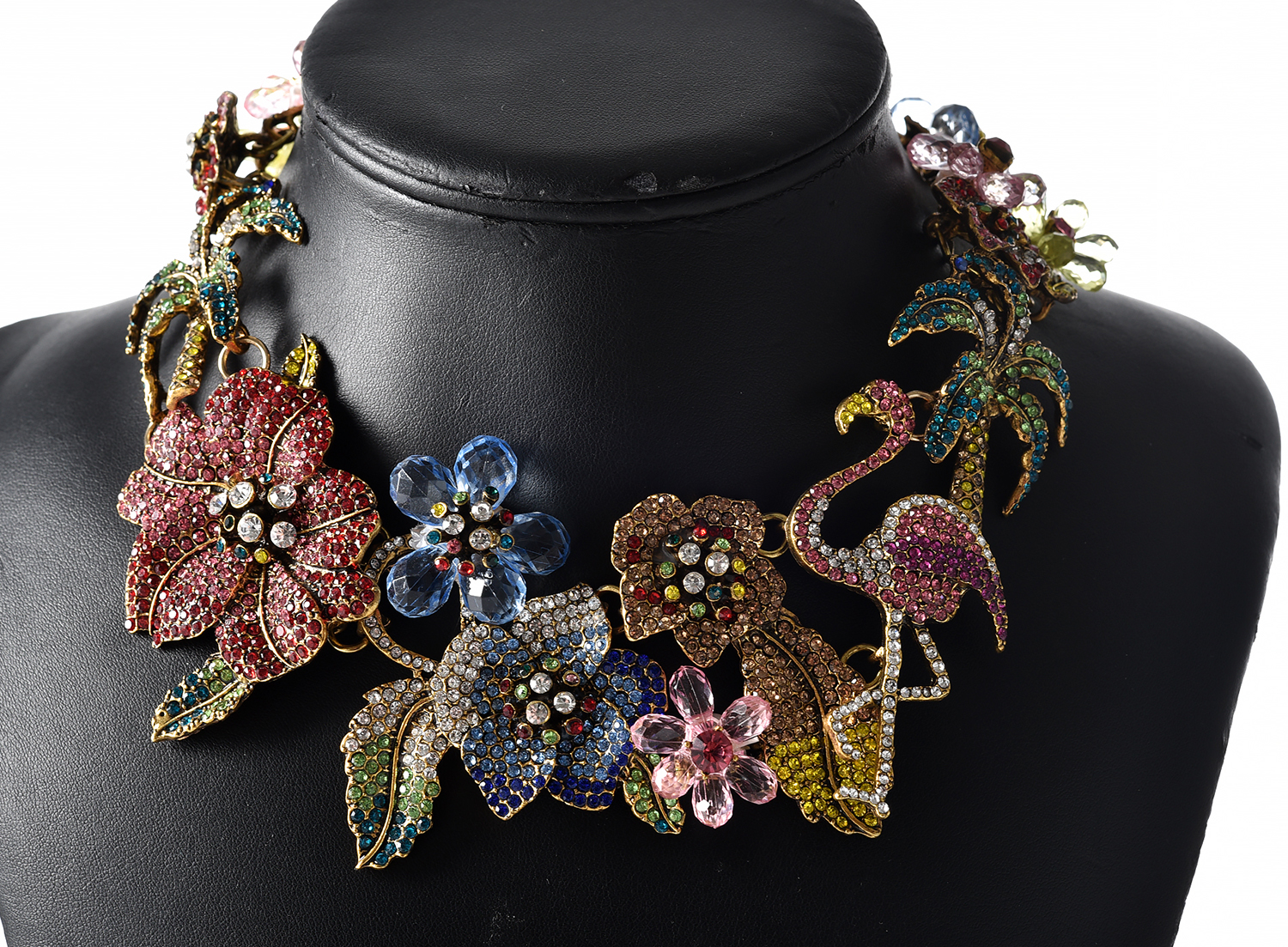 A COLOURED PASTE NECKLACE BY OSCAR DE LA RENTA, FEATURING EXOTIC FLOWERS AND FLAMINGOS