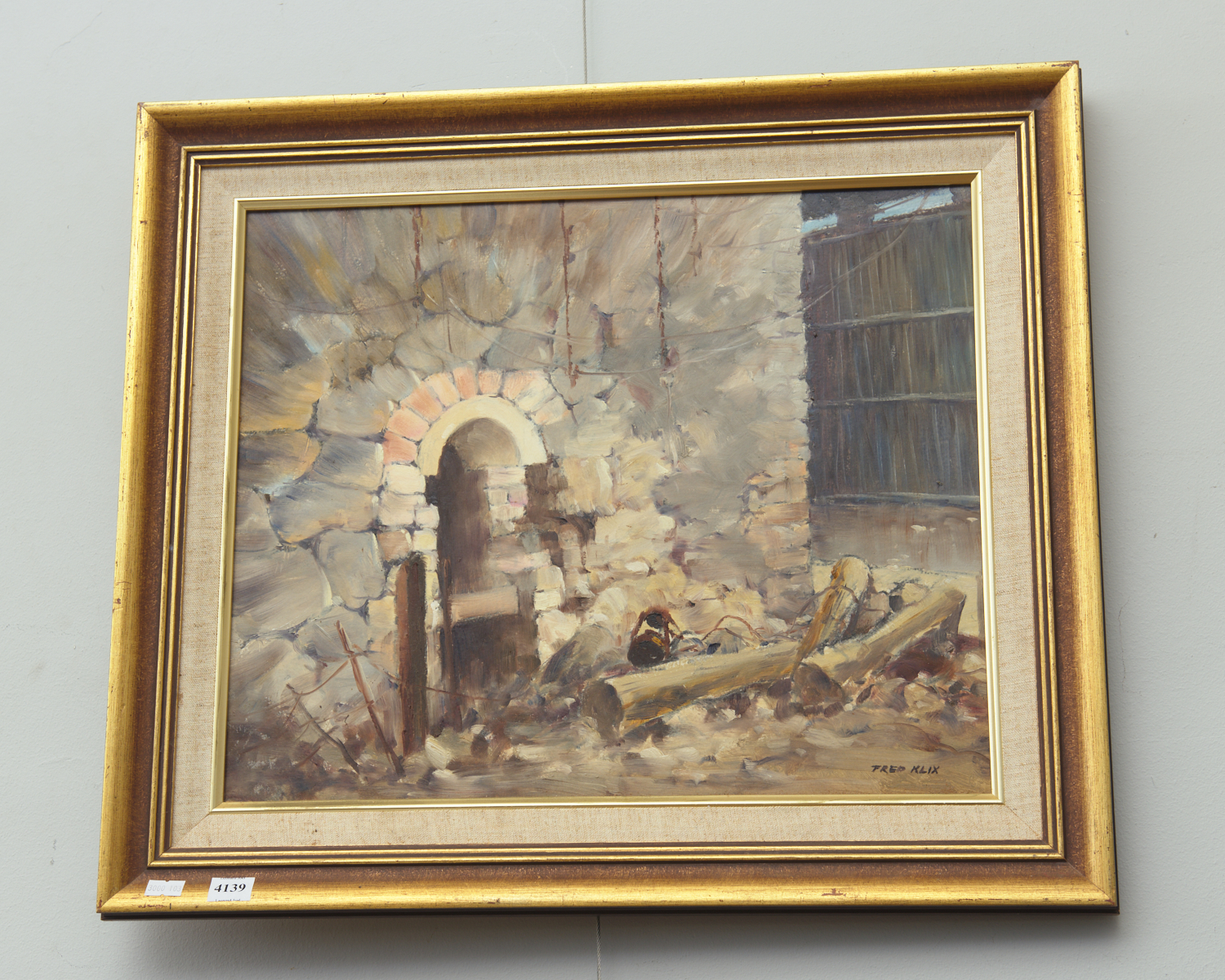 FRED KLIX, OLD LIME KILN, OIL ON BOARD, 37 X 43CM