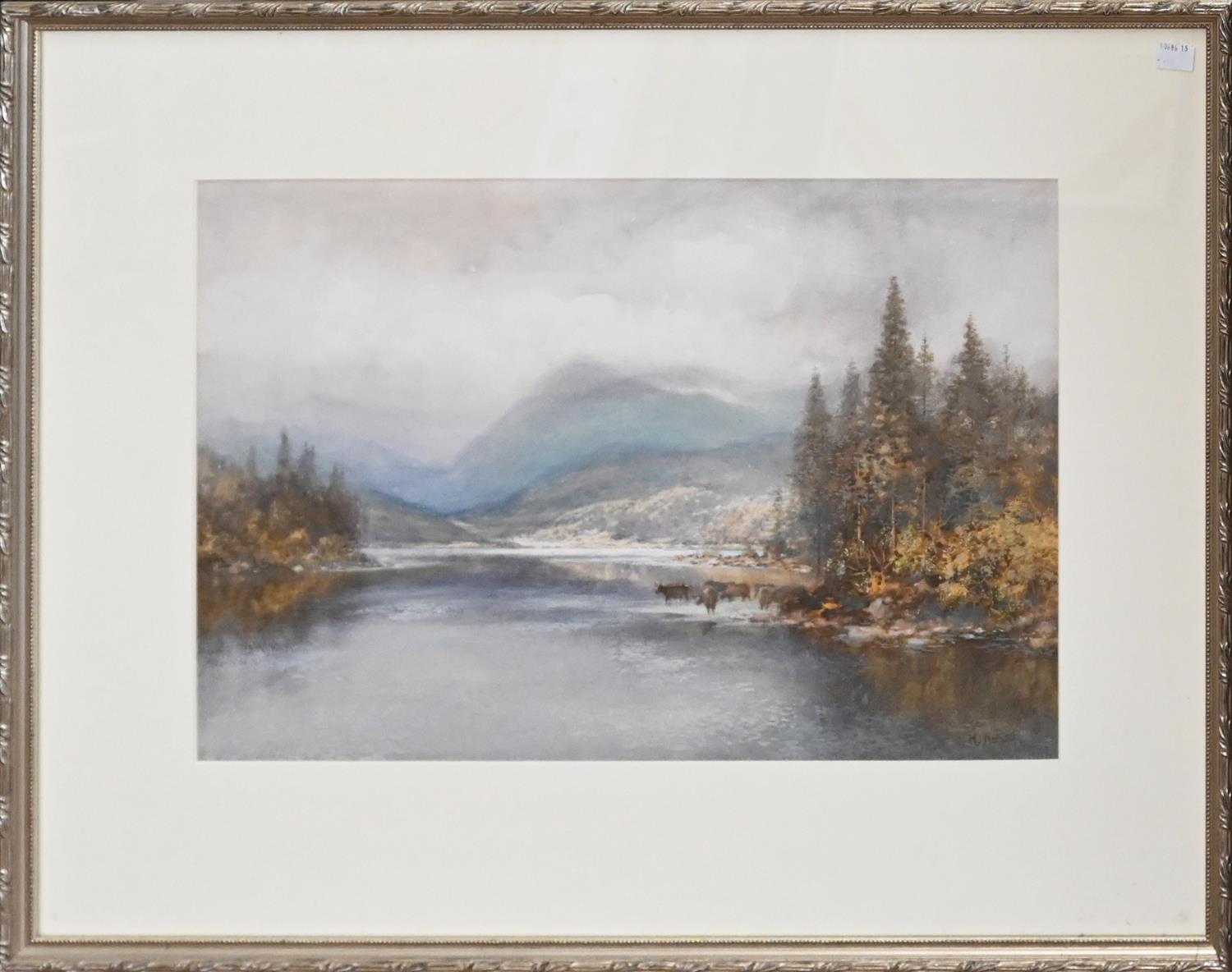 WILLIAM J WADHAM, MOUNTAIN LANDSCAPE, WATERCOLOUR AND GOUACHE ON PAPER, 36 X 54CM, FRAME: 60 X 77CM