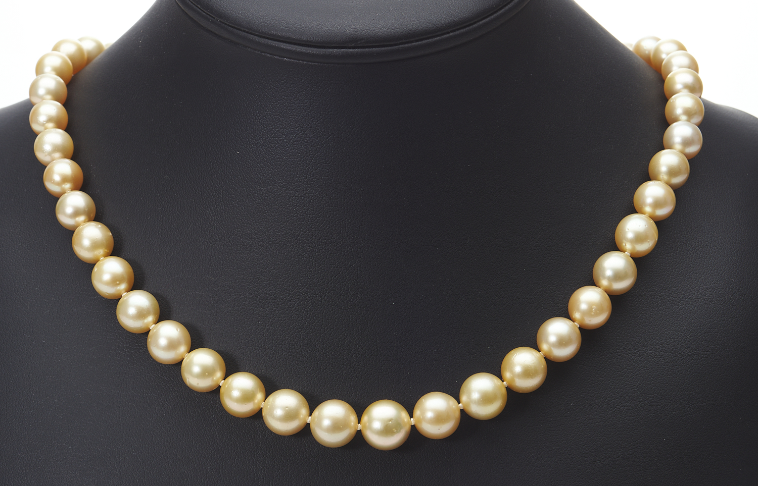 A GRADUATING STRAND OF GOLDEN SOUTH SEA PEARLS MEASURING FROM 9.0MM TO 12MM, TO AN INVISIBLE PEARL CLASP, TOTAL LENGTH 500MM