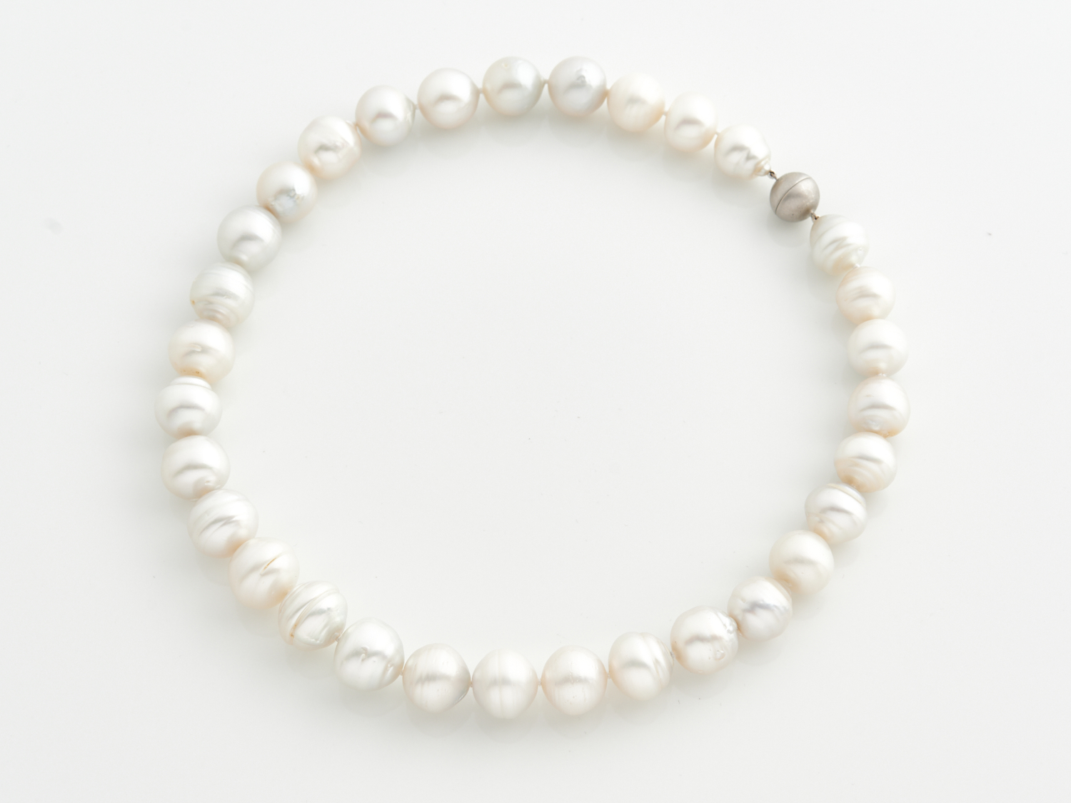 A STRAND OF BAROQUE SOUTH SEA PEARLS 13.0MM TO 16.0MM TO A MAGNETIC BALL CLASP, TOTAL LENGTH 460MM
