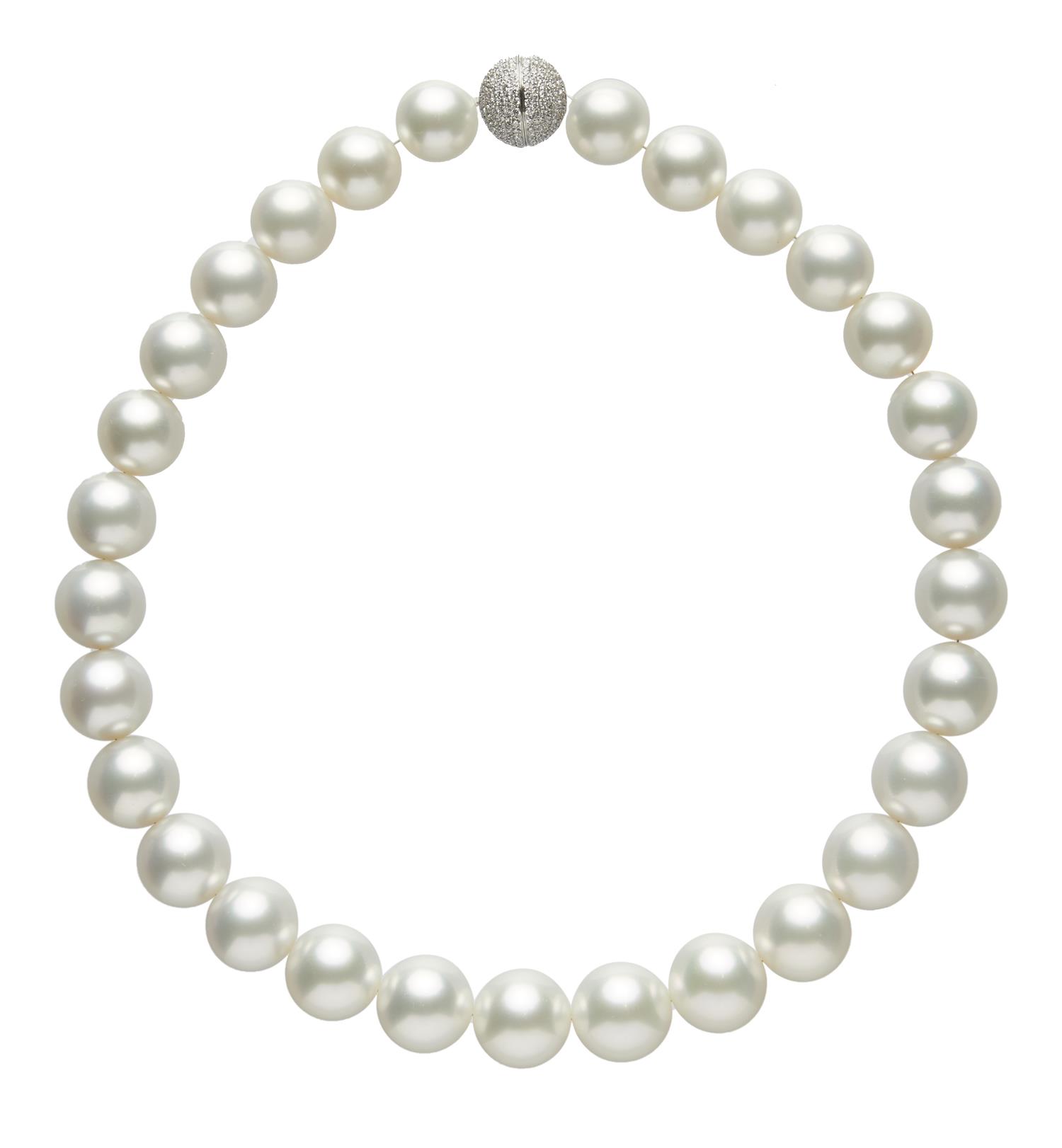 Composed of 29 cultured pearls, graduating from approximately 16.00-14.00mm, completed by an 18ct white gold ball clasp pavé-set with brilliant-cut diamonds, together weighing approximately 3.49 carats, circumference 460mm.