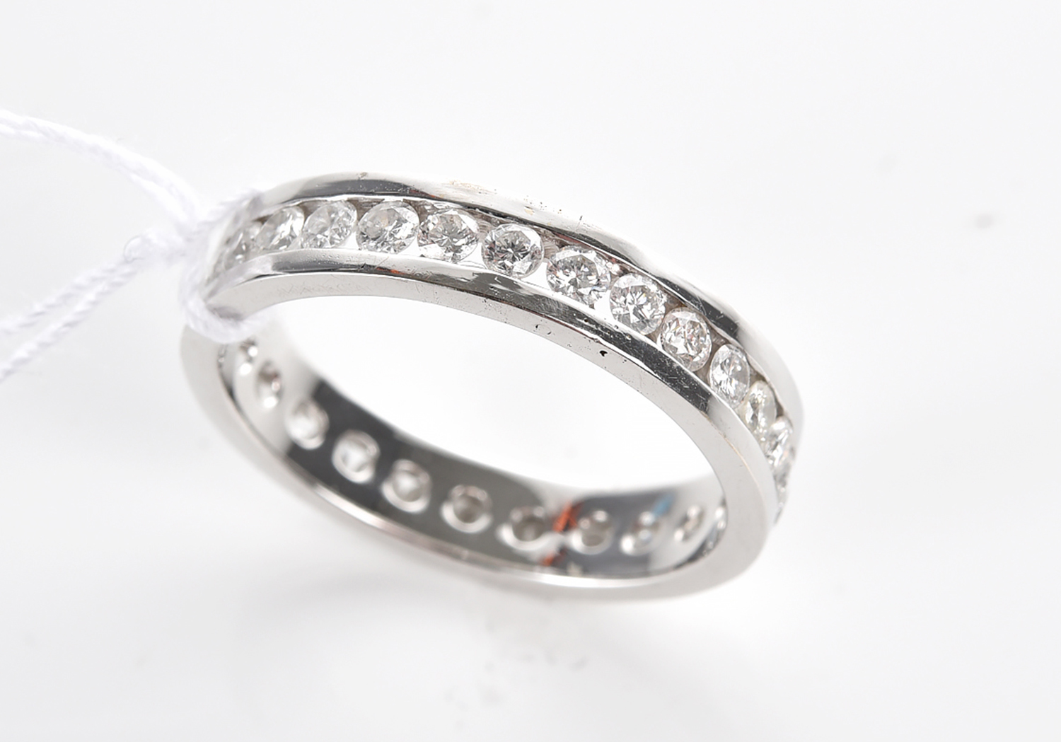 A GENT'S DIAMOND ETERNITY RING IN 18CT WHITE GOLD, TOTALLING 2.65CTS , SIZE U, 5.5GMS