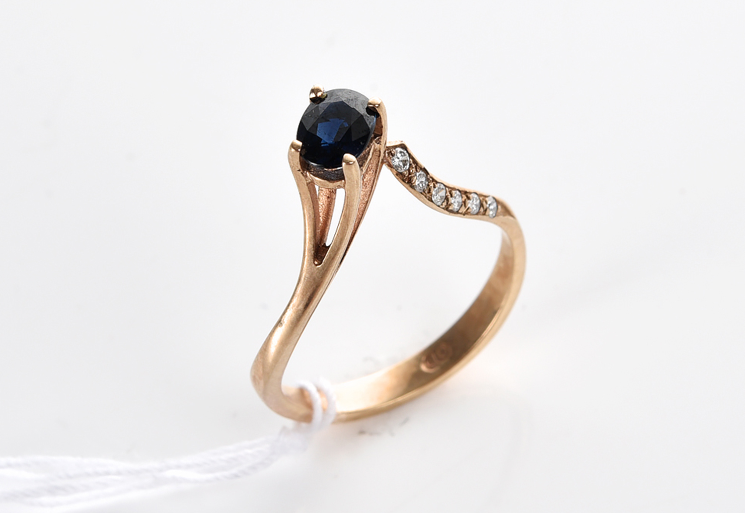 AN AUSTRALIAN SAPPHIRE AND DIAMOND RING IN 9CT GOLD, SIZE K-L, 1.8GMS