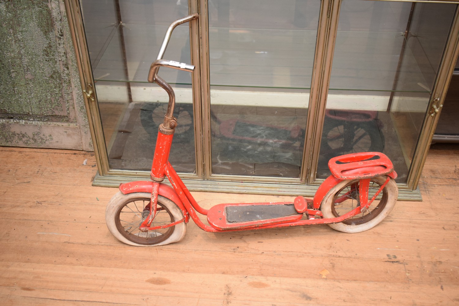 A VINTAGE RED SCOOTER (A/F) (83H X 115W CM)