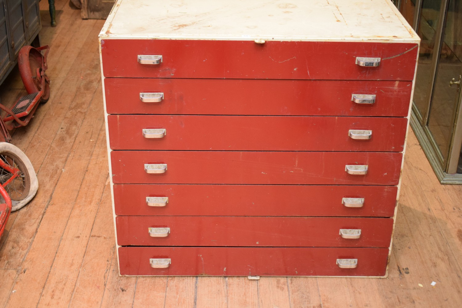 A VINTAGE INDUSTRIAL SEVEN DRAWER FILING CABINET (A/F) (90H X 97W X 70D CM) (PLEASE NOTE THIS HEAVY ITEM MUST BE REMOVED BY CLIENTS OR CARRIERS AT THE CUSTOMERS EXPENSE. LEONARD JOEL STAFF CANNOT ASSIST CARRYING THIS ITEM)