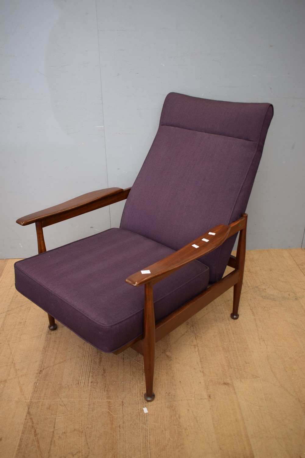 A MID-CENTURY TEAK RECLINER WITH NEW UPHOLSTERY (91H X 70W X 97D CM)