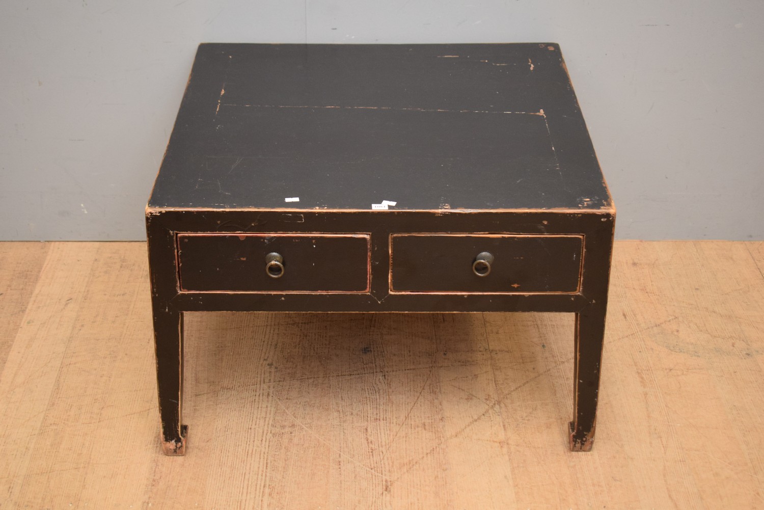 A CHINESE FOUR DRAWER EBONISED COFFEE TABLE (50H X 76W X 76D CM)