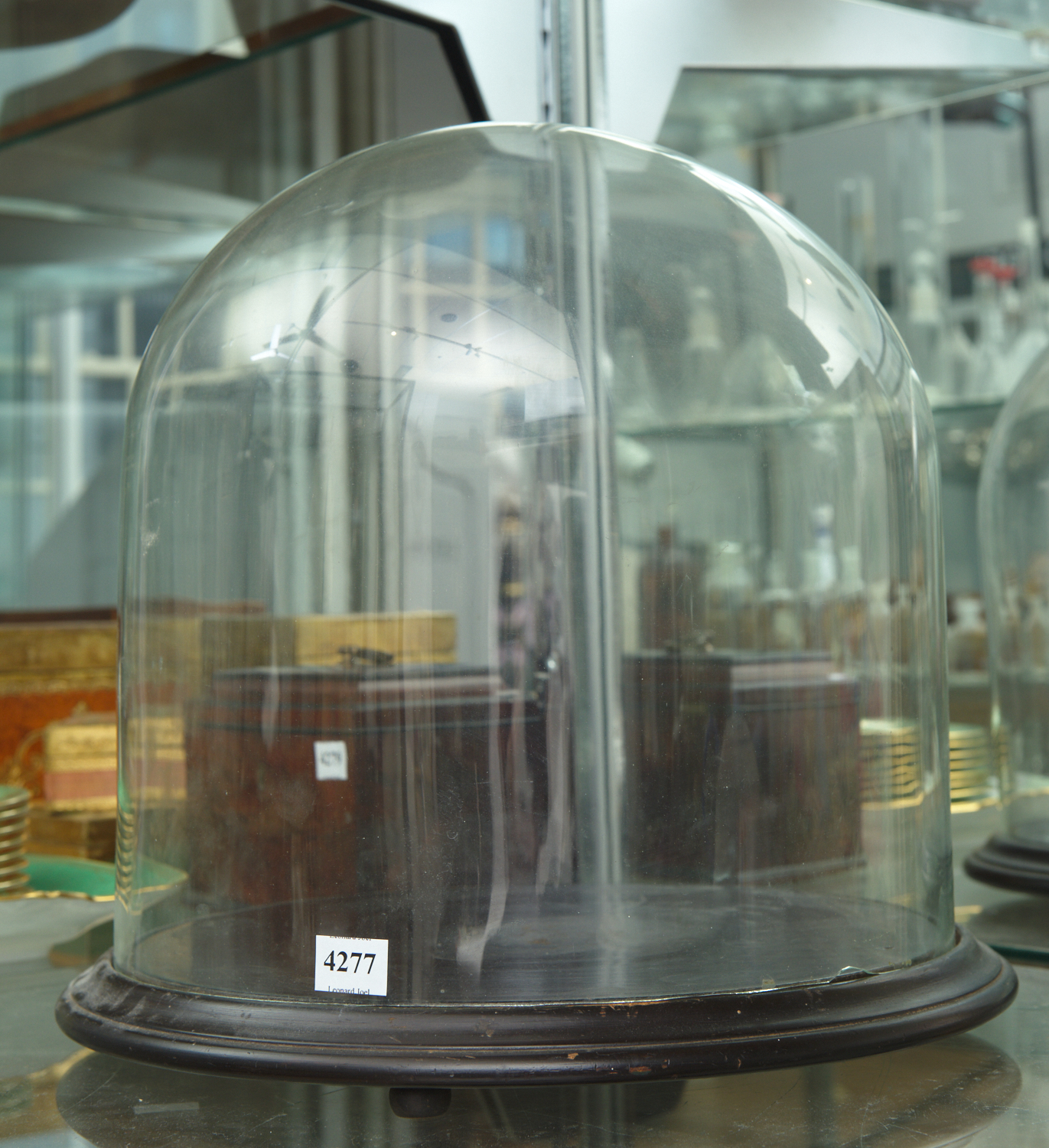 A FRENCH GLASS DOME ON STAND