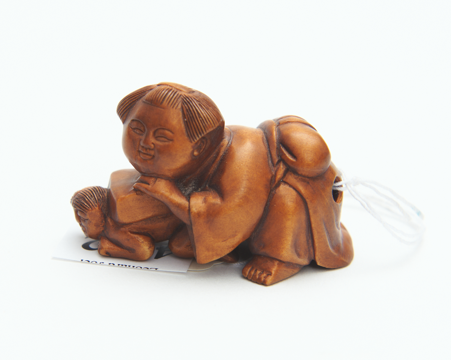 A BOXWOOD NETSUKE - WOMAN AND MAN