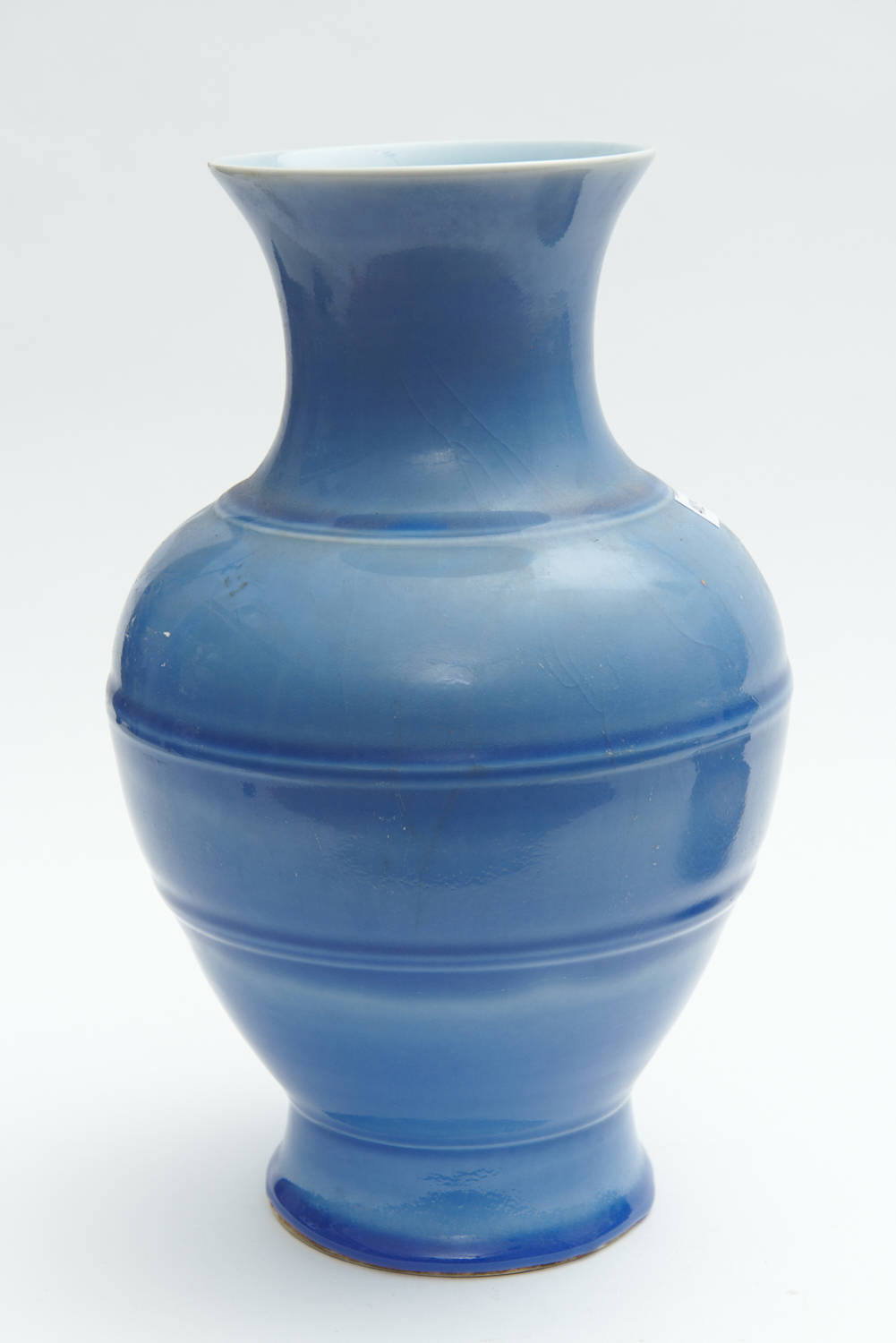 A PALE BLUE GROUND VASE, 35 CM HIGH