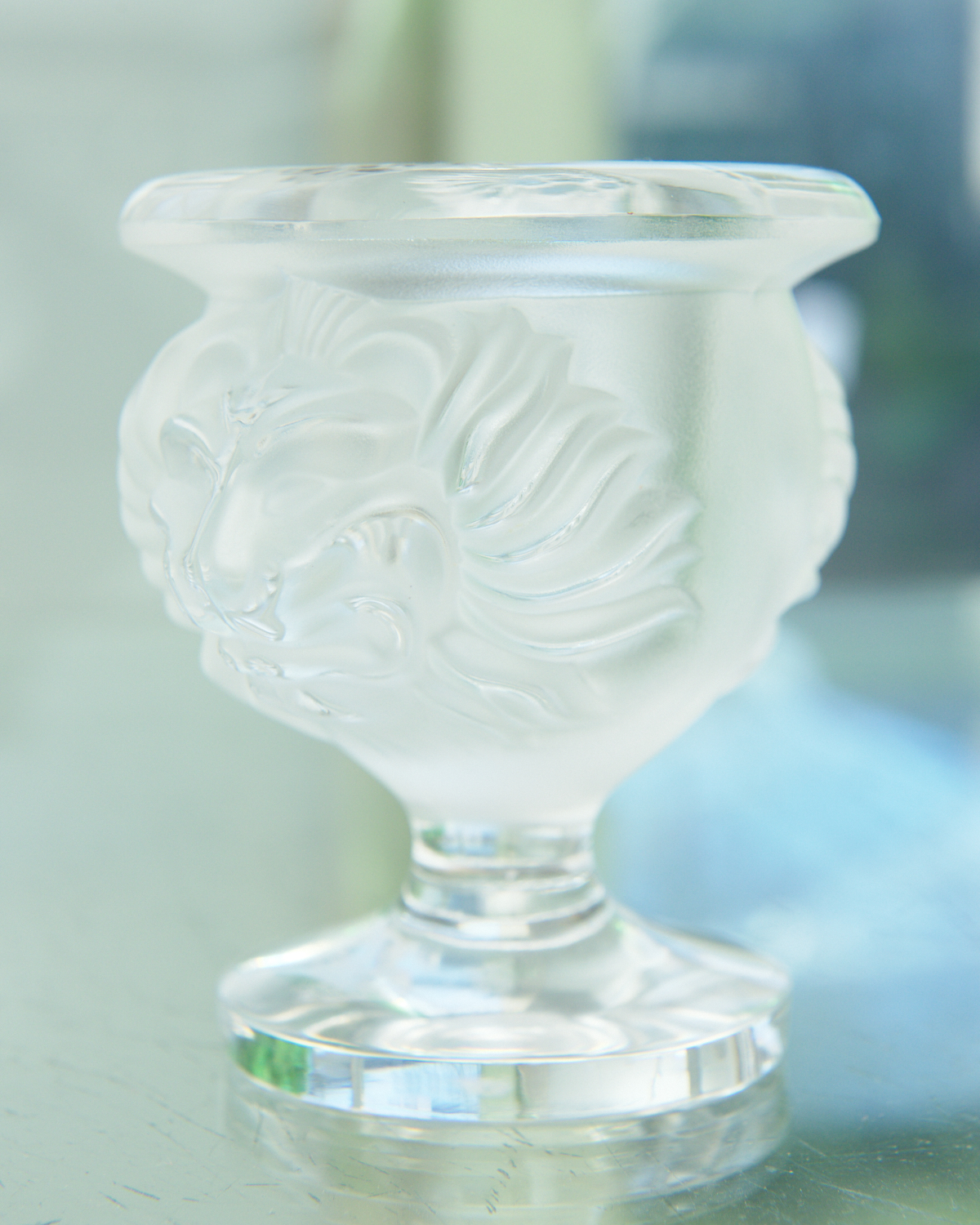 A LALIQUE 'TETE DE LION' MASK MINIATURE URN, 9.5 CM HIGH